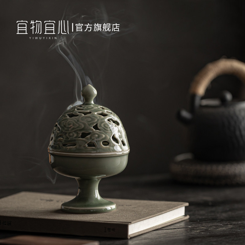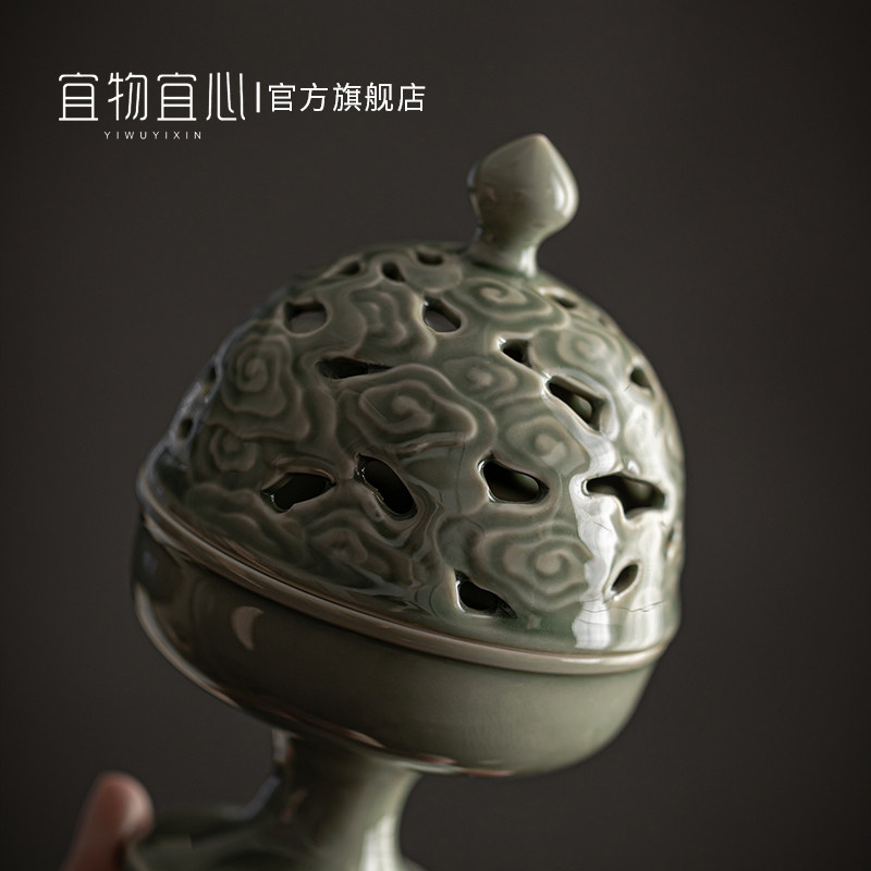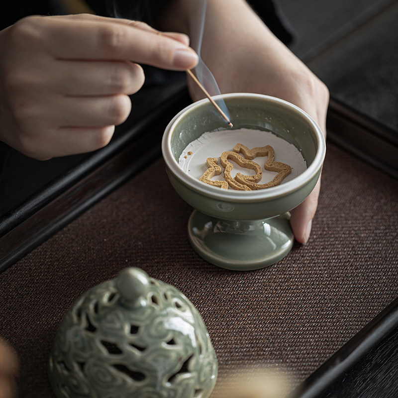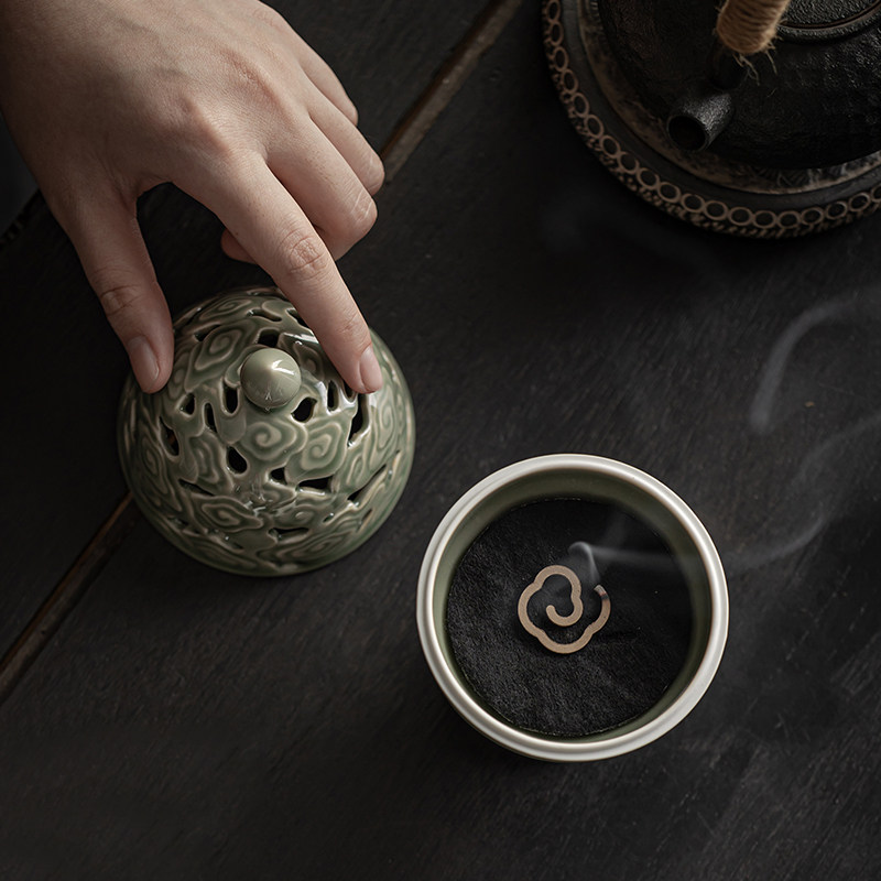 View Cloud Incense Furnace _ Retro Green View Cloud Incense Stove _ Green Porcelain Viewing Cloud Incense Stove Beating Seal Sets Group _ Retro Green View Cloud Incense Stove Slapped Seal Sets-Aoki Porcelain