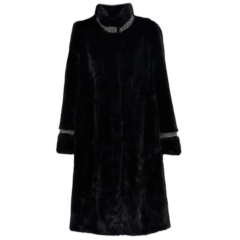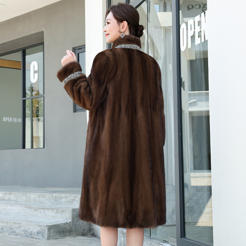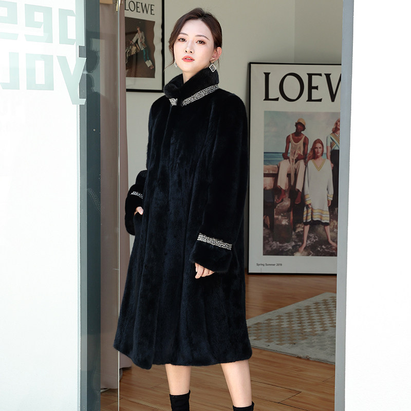 Haining 2022 new mink fur coat women imported mink fur mid-length whole mink fashion stand collar fur coat