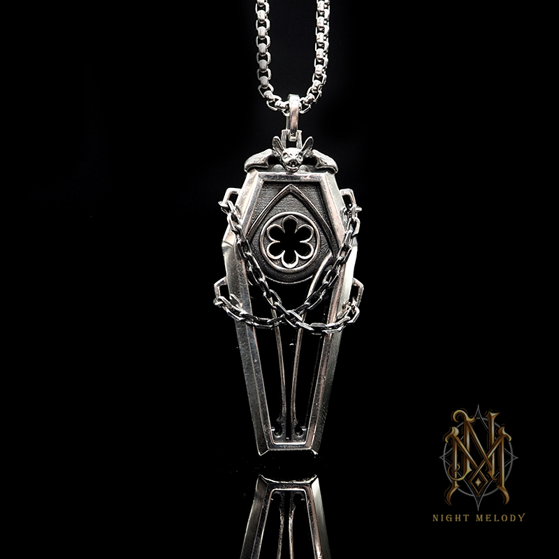 Nocturne Studio 925 Sterling Silver Original Design Small Retro Gothic Sweet Cool Wind Bat Coffin Couple Pendant