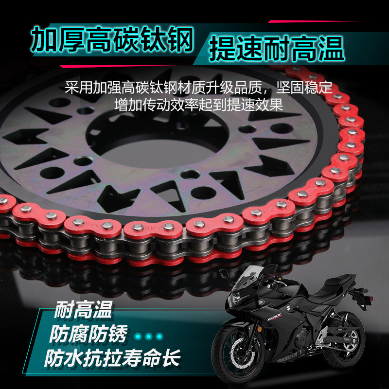 Considerations for rivet-fastening installation See tobellwood 250 46 teeth 14 teeth HX black gold chain Suzuki 250 front and back teeth disc 46 teeth 14 teeth suit Suzuki 250 Three sets 46