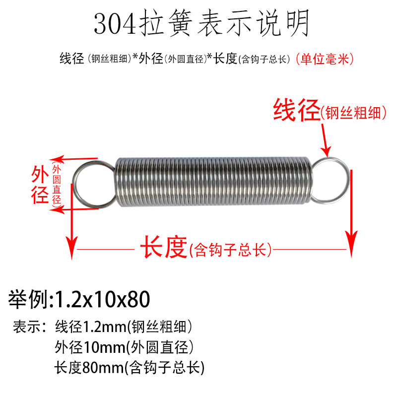 Line diameter 0 4mm stainless steel 304 small spring tensile tensile band hook spring bike tensile spring can be customized