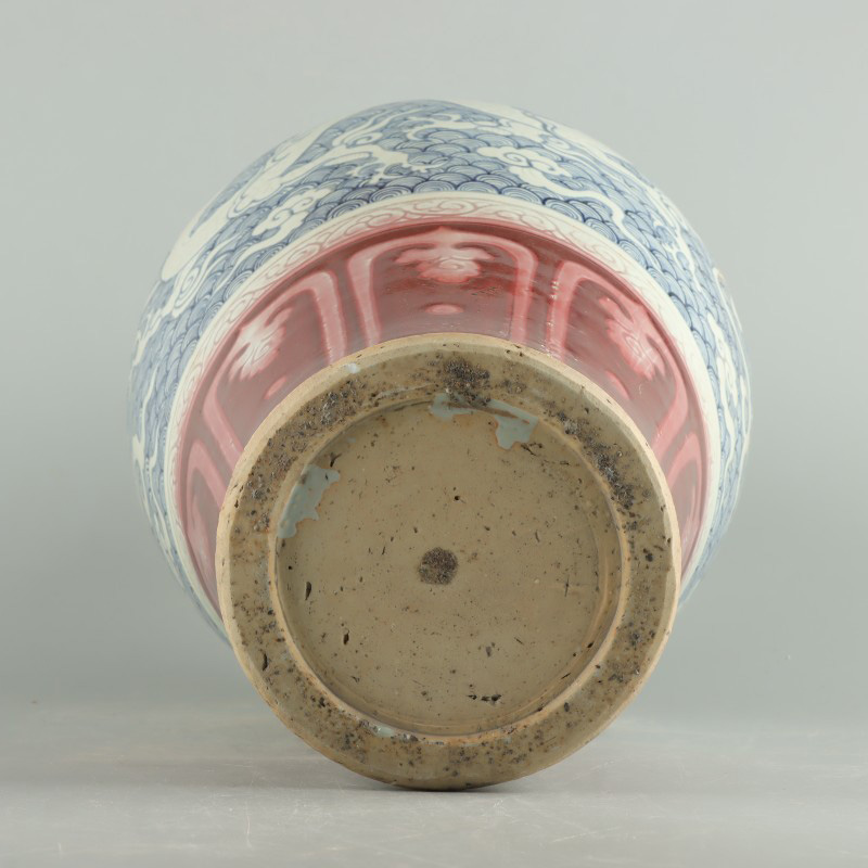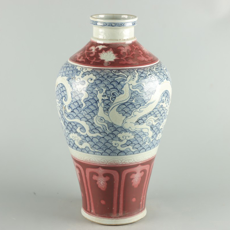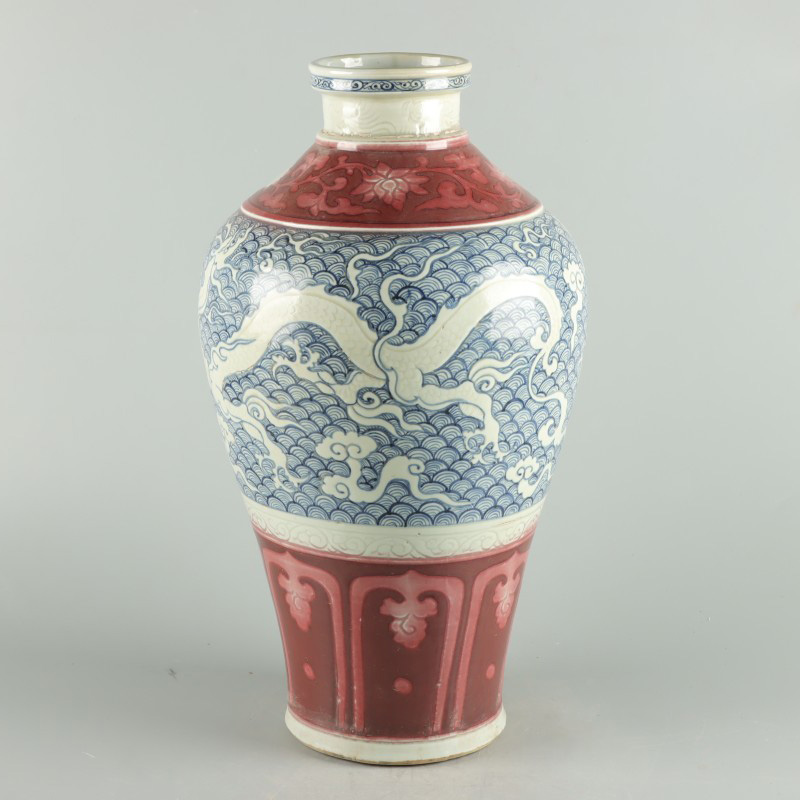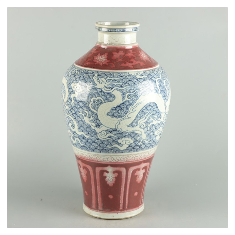 (Ghost City) CQ4713 Old Tibetan blue and white sea water dark engraved dragon pattern glaze red plum vase