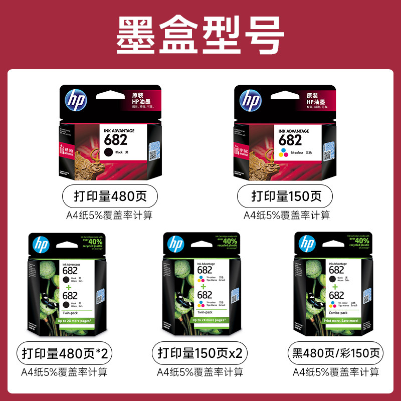 682 Black Ink Cartridges (480 Pages) 682 Color Cartridges (150 Pages) 682 Black Color Suit (Black Color) 682 Double Black Suit (Black Black) 682 Double Color Cover