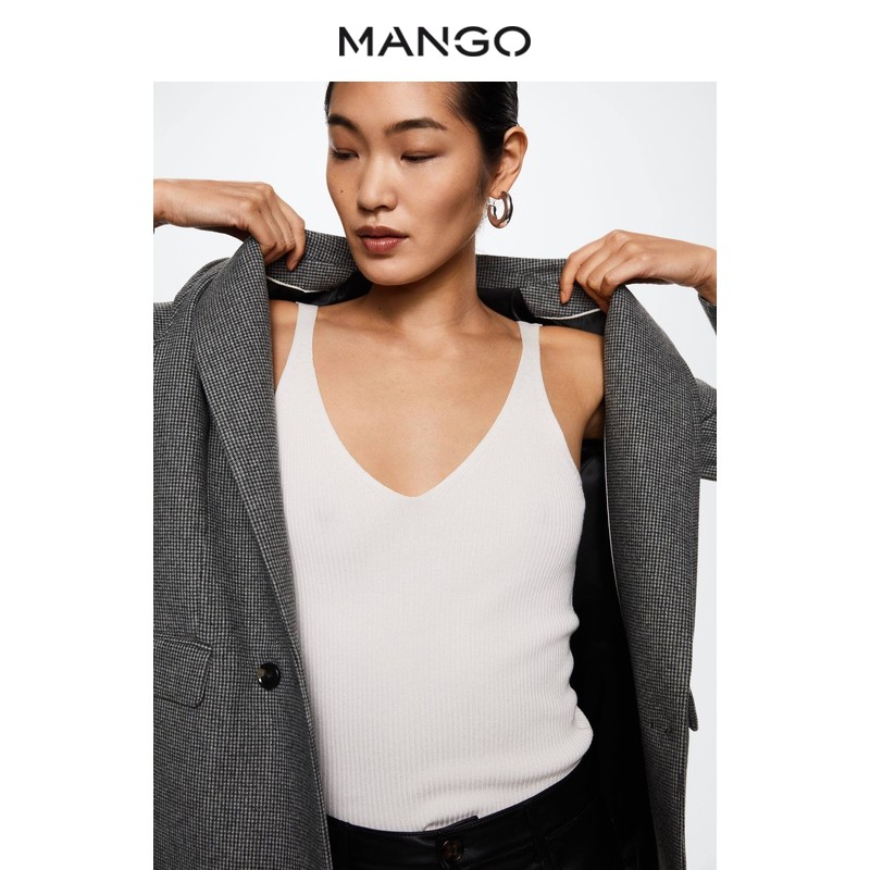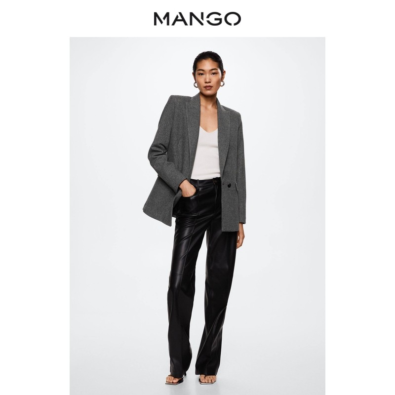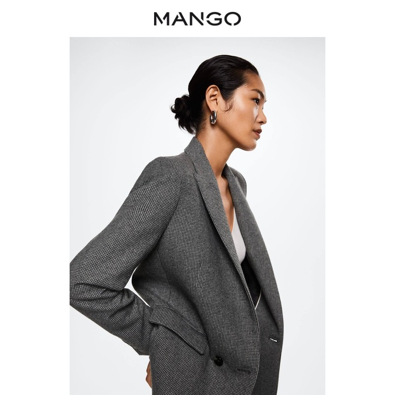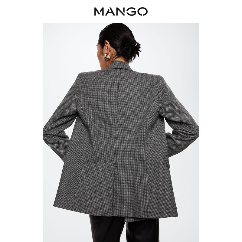 MANGO women's jacket 2022 autumn and winter new houndstooth wool lapel V-neck blended suit jacket