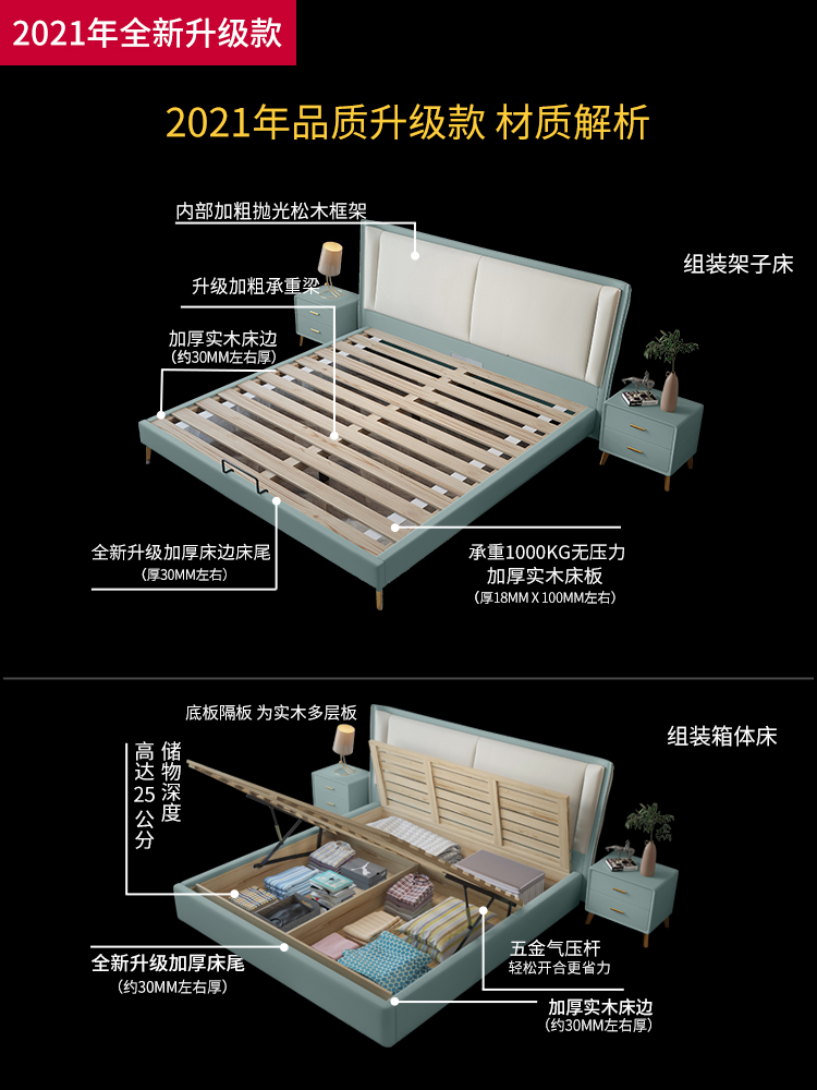 Modern simplicity 1 8 meters 1 5m high-tech fabric bed light luxury leather bed 1 2 meters 1 35m children's solid wood bed
