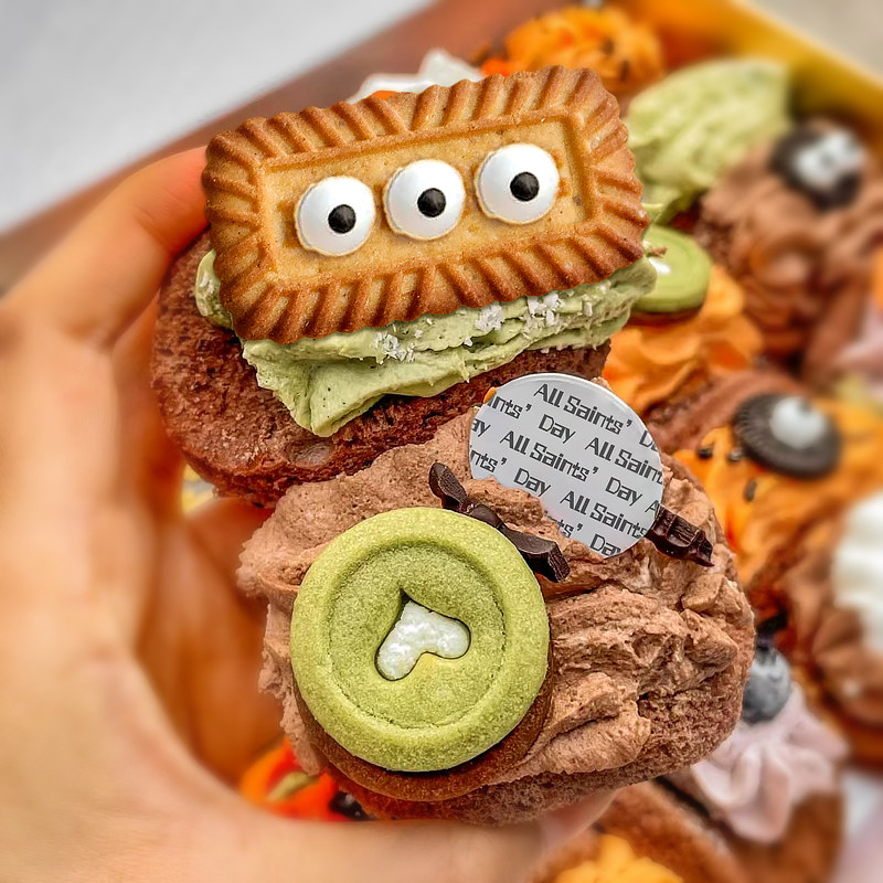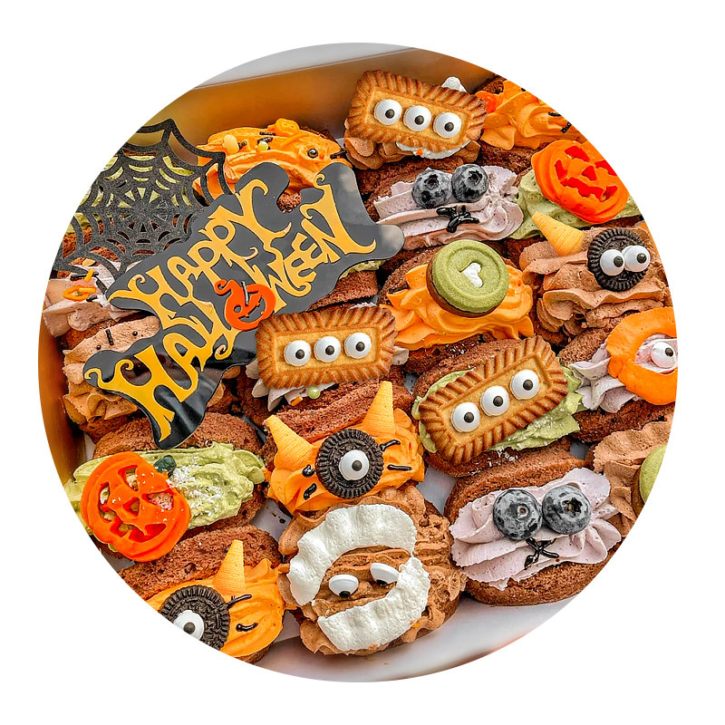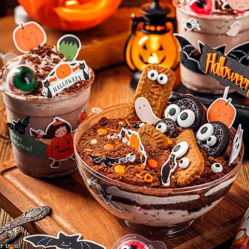 Halloween cake decoration caramel biscuits small eyes sugar beads pressed slices sugar tips and crisp corners cupcake baking inserts