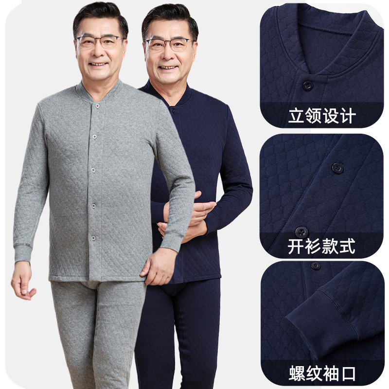 Elderly cardiovert thermal underwear for women's singles 3 layers clip cotton thickened Mom pure cotton pair of lapels for overstretched clothes and autumn pants for men's winter-Taobao