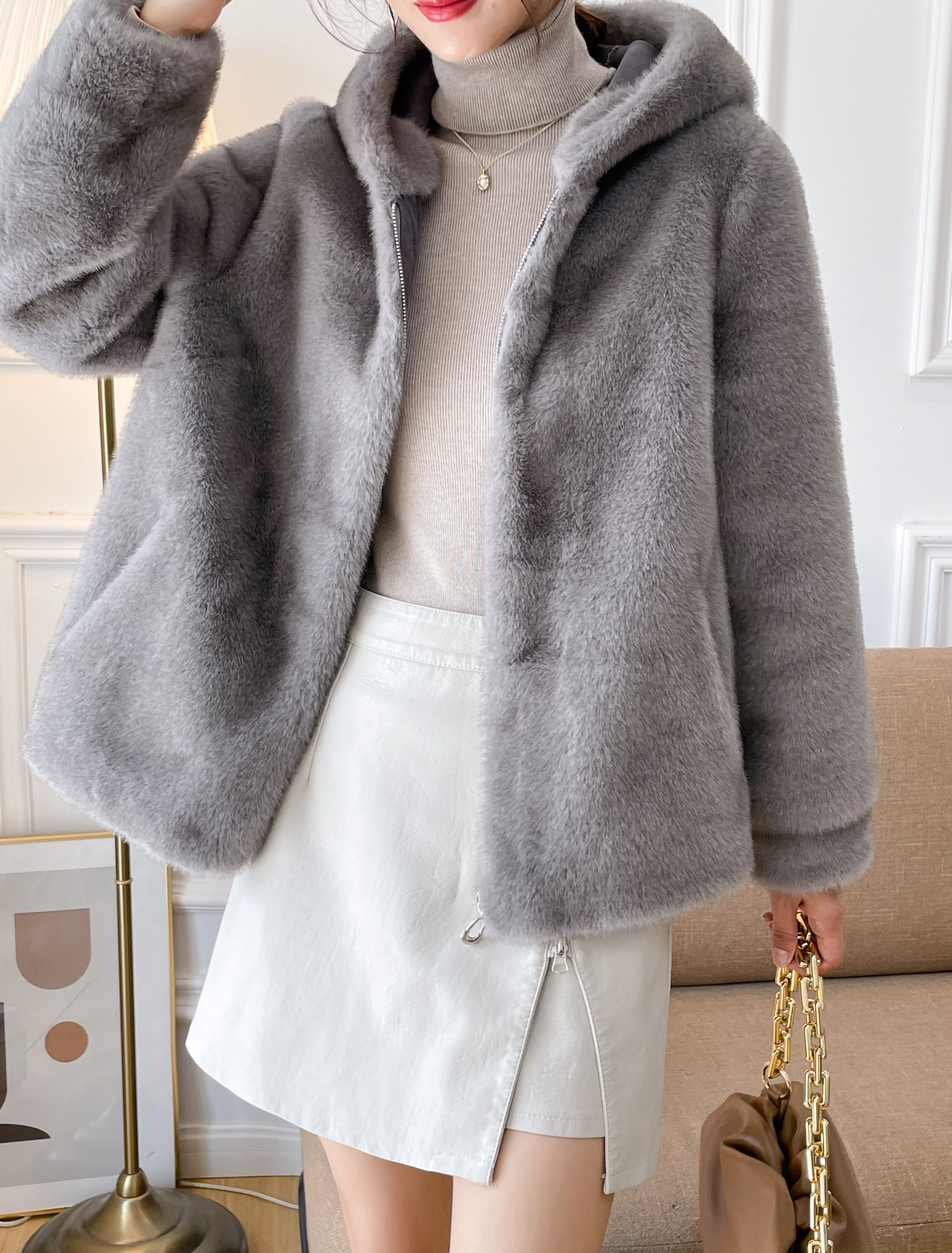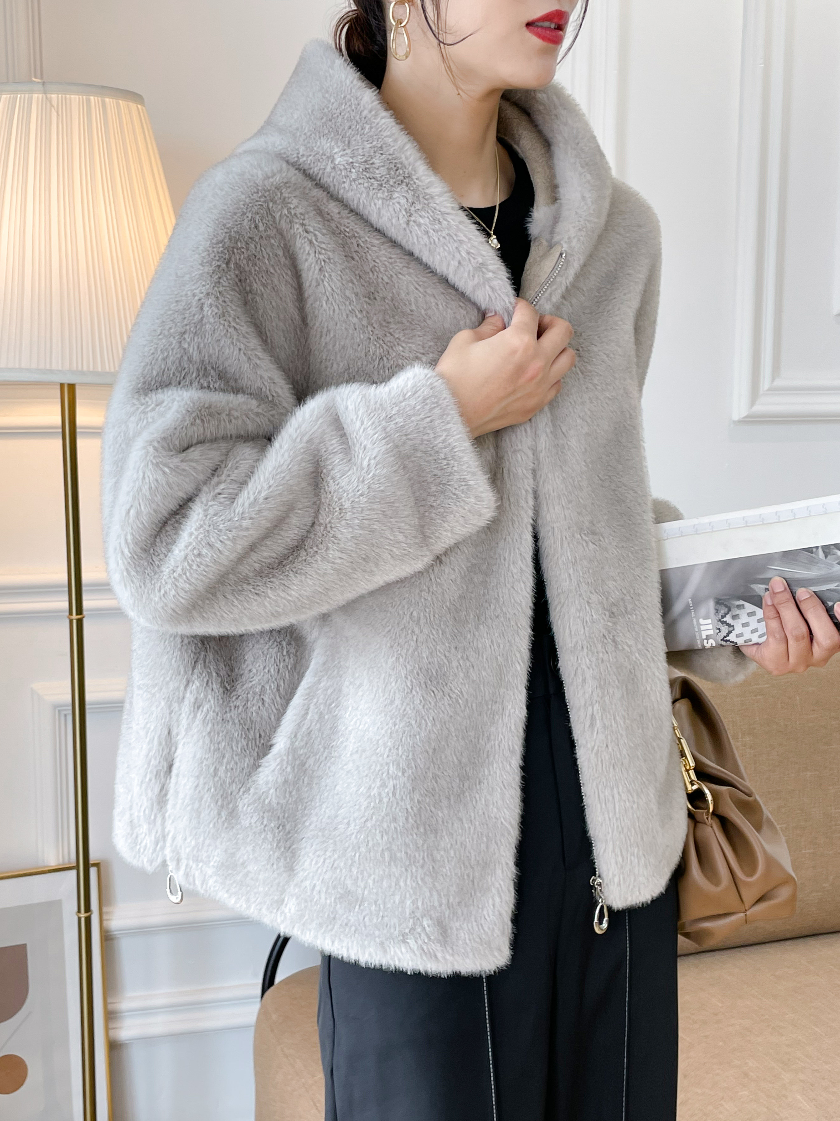 2022 new temperament hooded mink fur coat women's winter mink coat fur all-in-one mink velvet thickening