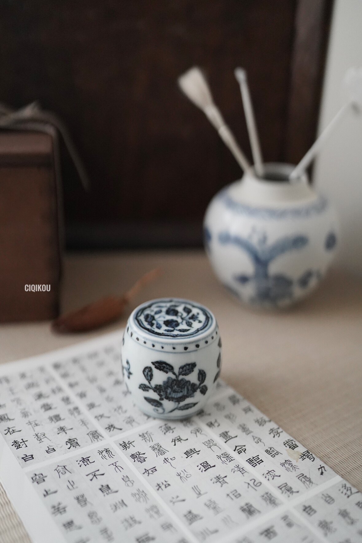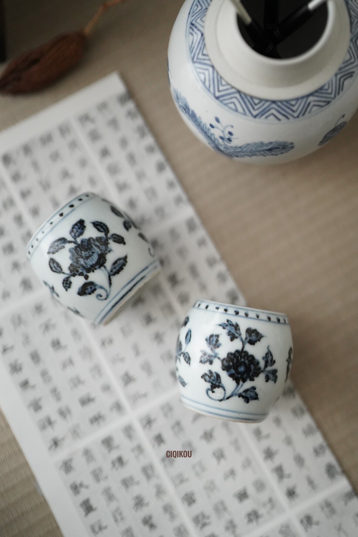 Porcelain Mouth-Green Flowers Series Wen House Floral pen holder incense stove hand painted wenfang Ya play Jianshui pen wash-Taobao