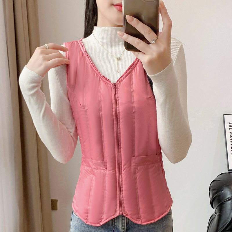 White duck suede new down waistcoat female autumn winter light slim short and warm waistcoat with down jacket liner small vest-Taobao
