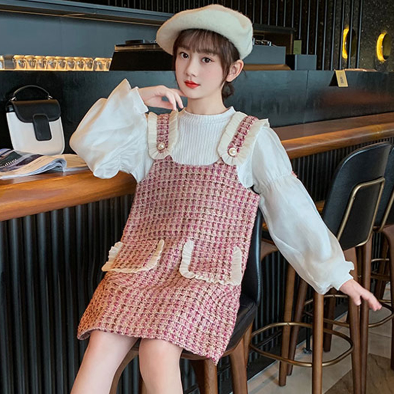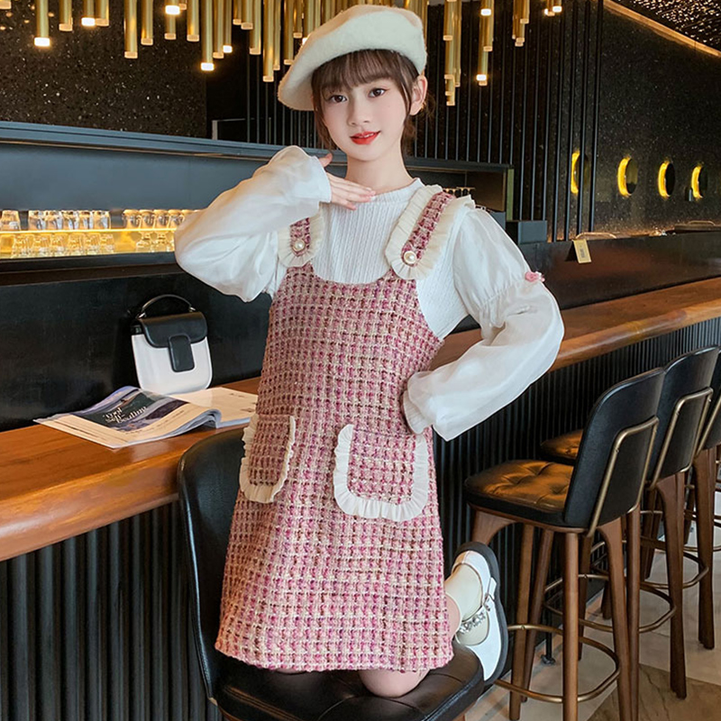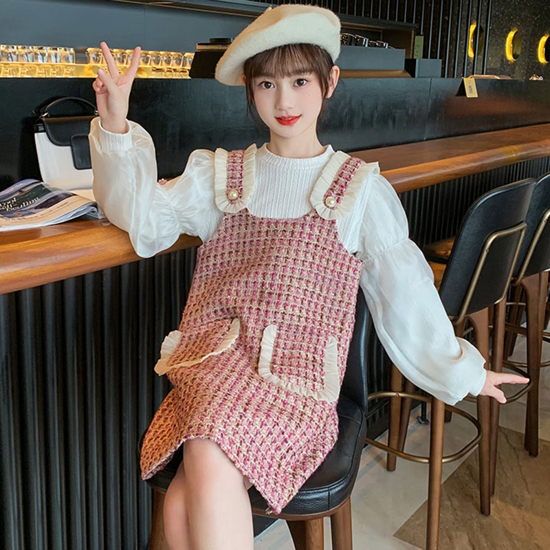Girl's small scents windy with dress 2023 new ocean qi children skirt cover trendy autumn and winter autumn clothing big child suit-Taobao
