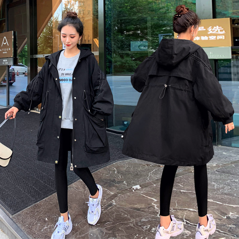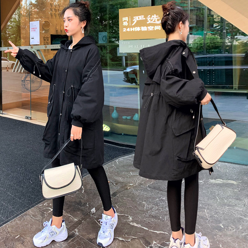 Pregnant women's autumn and winter clothing new Korean version of the mid-length windbreaker coat large size loose and thin 200 catties fat mm coat