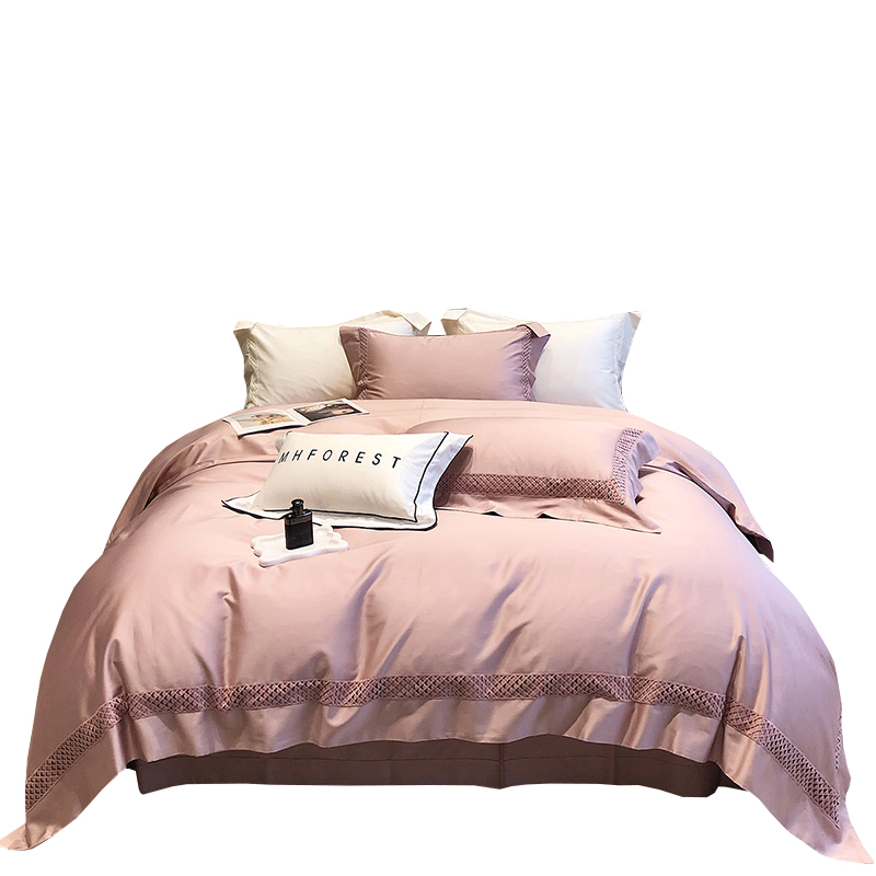 High-end 140-count horse cotton four-piece luxury pure-color lace pure cotton quilt cover long-staple cotton bedding