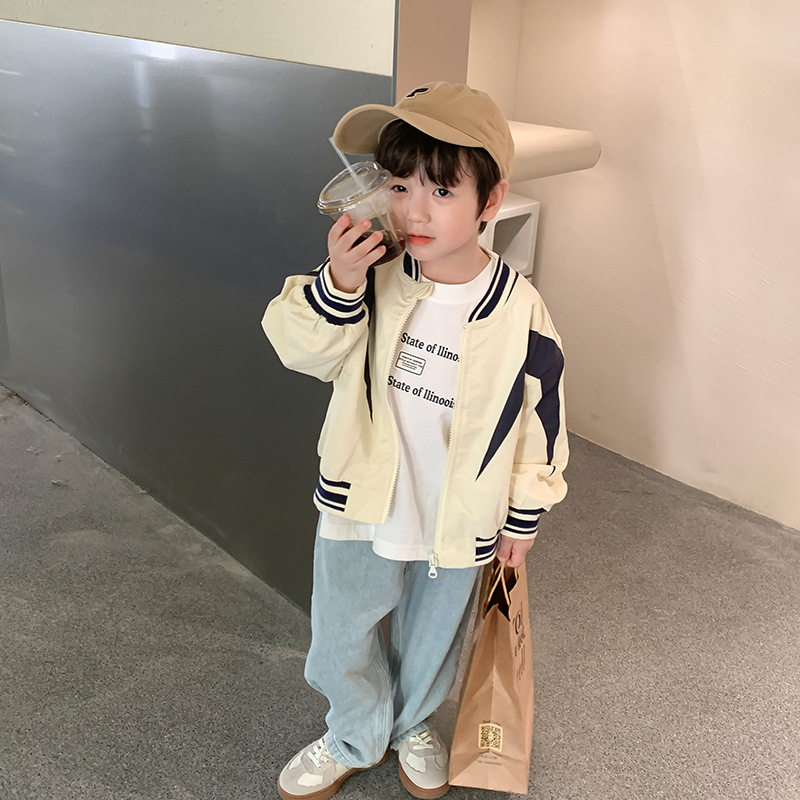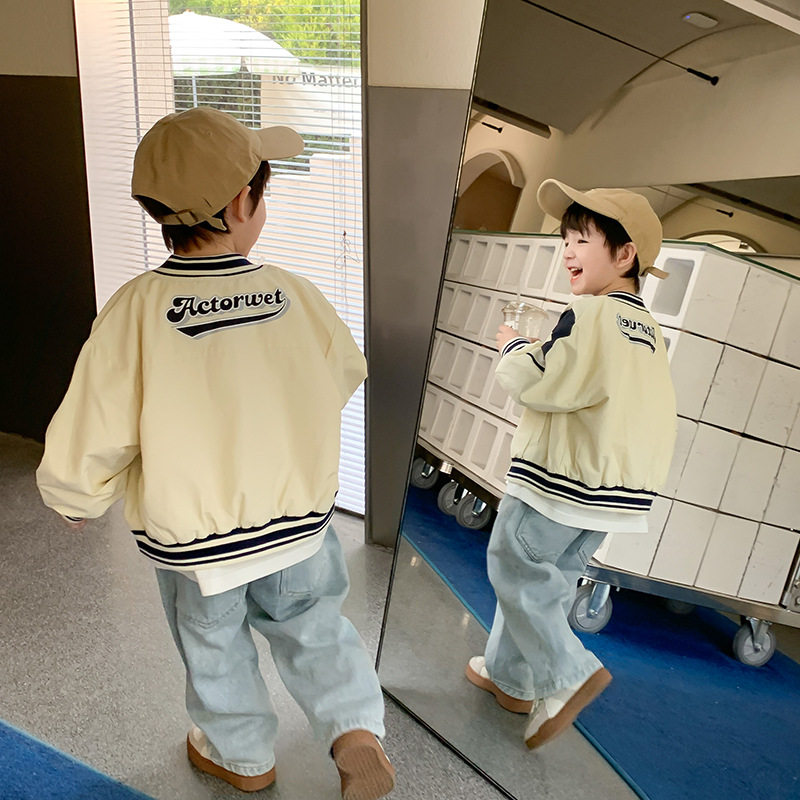 Children's jacket baseball uniform boys and girls 2022 autumn new product color matching baby handsome short letter jacket top