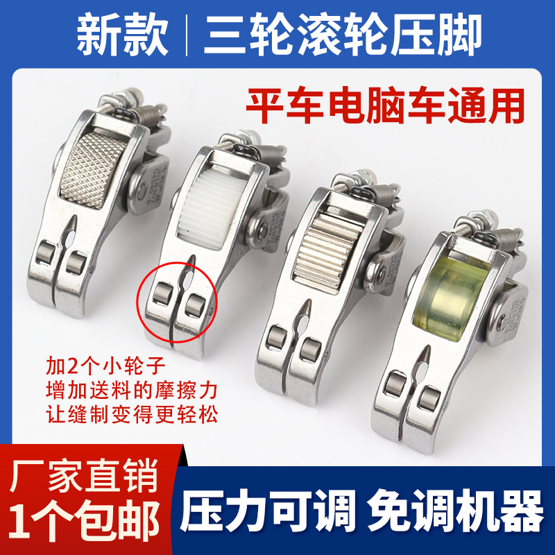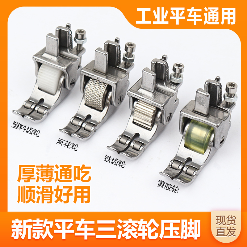 Three rounds of yellow rubber wheel presser foot wheels Twist Wheel Presser Foot Three Wheels Plastic Teeth Presser Foot Three Wheels Iron Gear Presser Foot