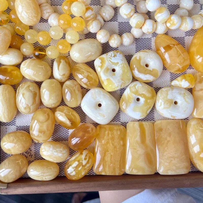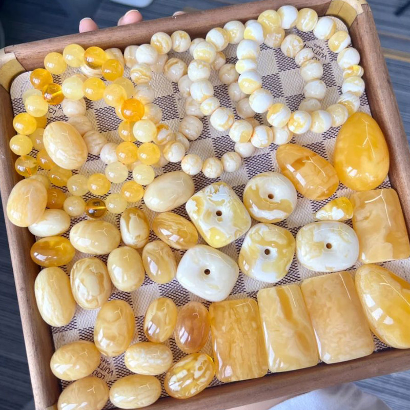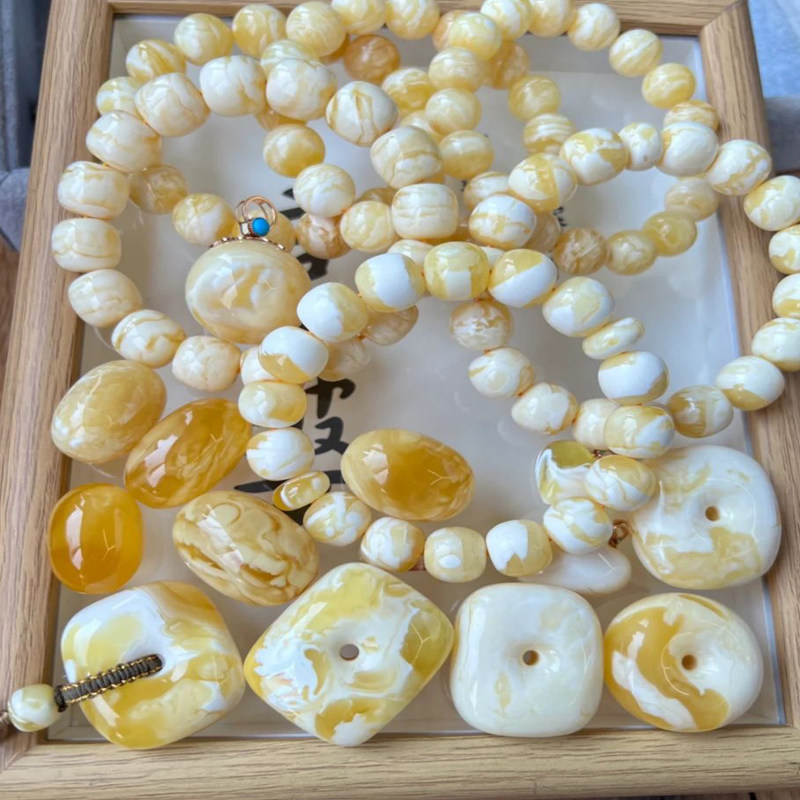 Porro Recipes Natural Amber Honey Wax Pendant Bracelet Necklace Myanmar Blue Perl 108 Buddha Pearl Round Pearl Live Link-Taobao