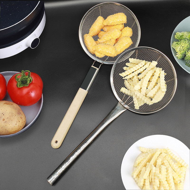 Household colander ultra-fine mesh kitchen strainer filter mesh stainless steel noodle spoon dumpling fried commercial coarse mesh spoon