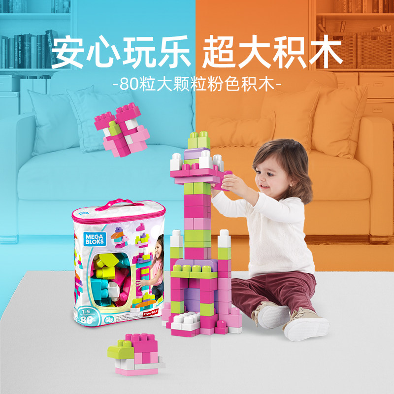 Big block digital learning giraffe multi-functional block ride elephant hand-drawn cart 80 pink large particle blocks 80 blue large particle blocks 80 pink sticker book 8