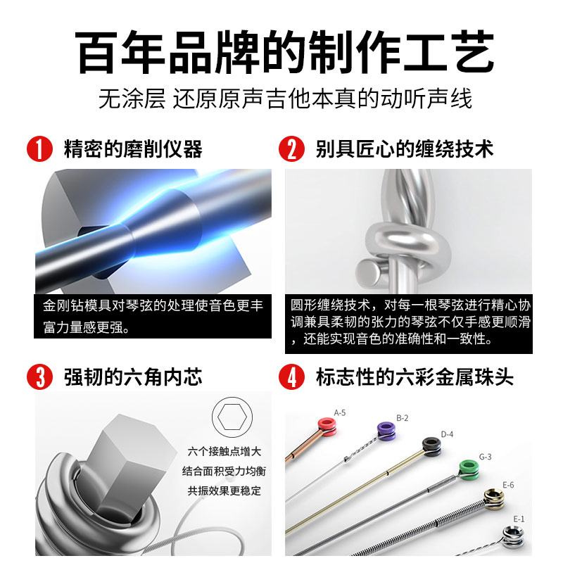 Dadario guitar strings EJ16 US production of phosphorus copper brass EZ folk soundwood Acoustic Wood Guitar Strings set EJ11-Taobao