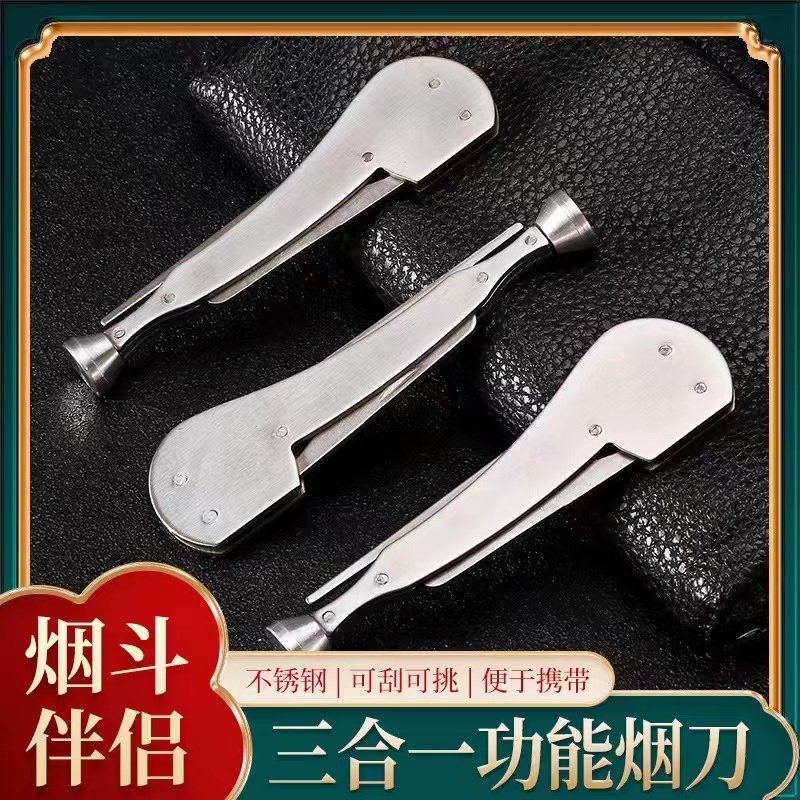Stainless steel pipe-type tobacco knife pipe cleaning tool three-in-one pressure stick through needle