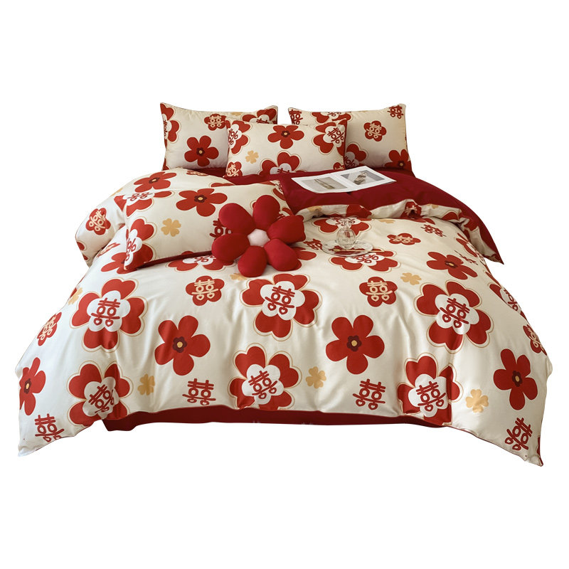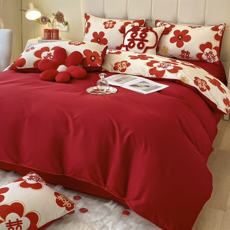 Wedding Bed with 4 Pieces of Married Simple Big Red Bed Bed Bed Wedding Bed
