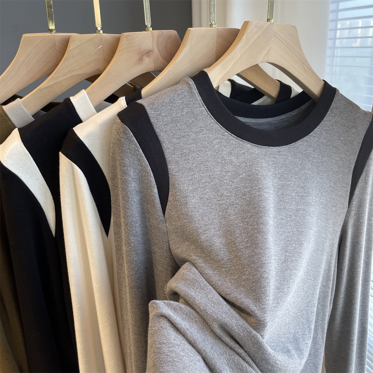 Spring and autumn design of color and soft sleeve T - shirt fat mm thin inside and blouse 3098