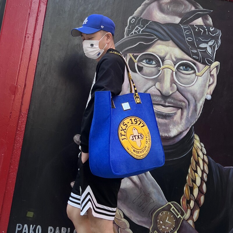 JTXS Klein blue felt bag trendy single shoulder handbag Totbag shopping bag felt handbag-Taobao