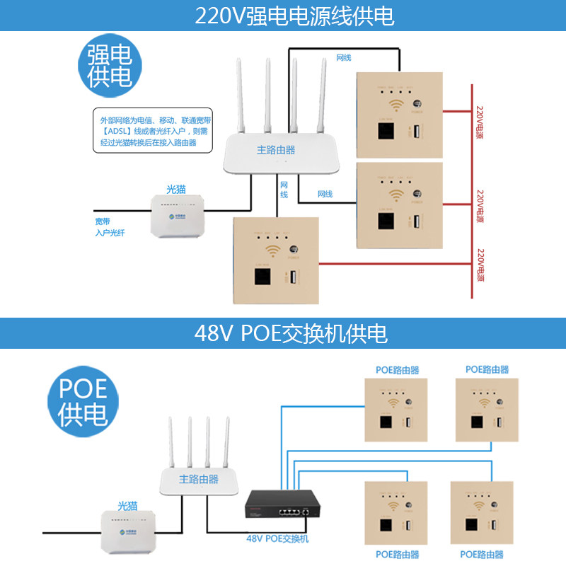 Wireless WiFi Gigabit Wall Router Into Wall AP Smart Socket Panel Message Signal Relay Amplifier