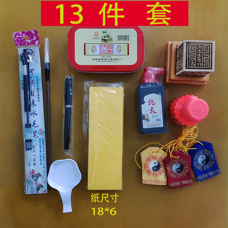 Daojiu Supplies Full Set Writing Brush Soft Pen Sermon Suit Seal Base Red Printed Clay Table Ink butterfly-Taobao