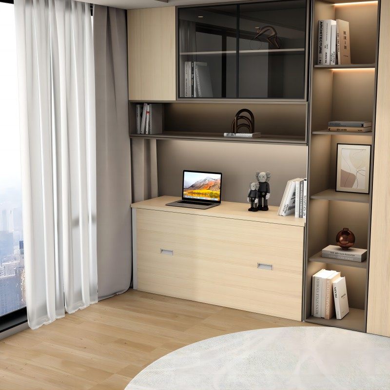 Invisible folding bed single home office book room desk bed 1 m 5 small family type telescopic bed table wardrobe One-Taobao