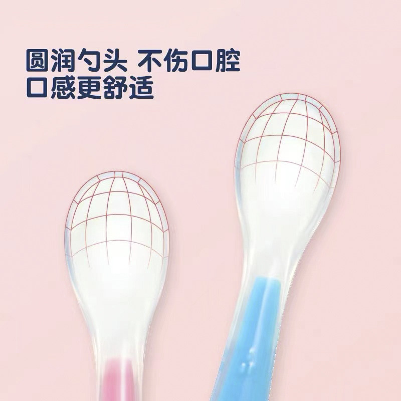 Two packs of baby silicone spoon food supplement feeding spoon newborn baby children's tableware soft head fruit mud rice spoon