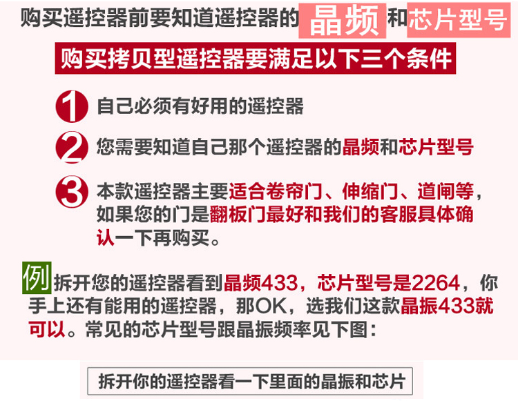 (Peach wood color) Frequency 433 (Black Boss) Frequency 433 Other frequency message upgrade metal (Black Boss) Frequency 433 (commonly used by locksmiths) Frequency 315 (commonly used by locksmiths)