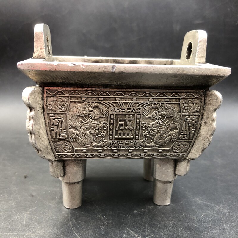 Antique - playful miscellaneous aroma furnace Xiaoding quartet furnace double dragon furnace middle - family furnace copper