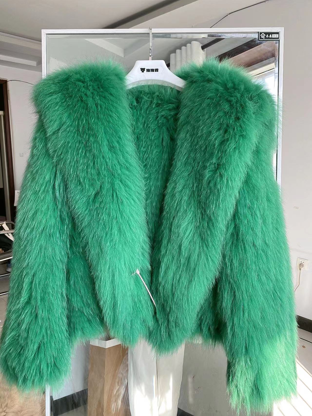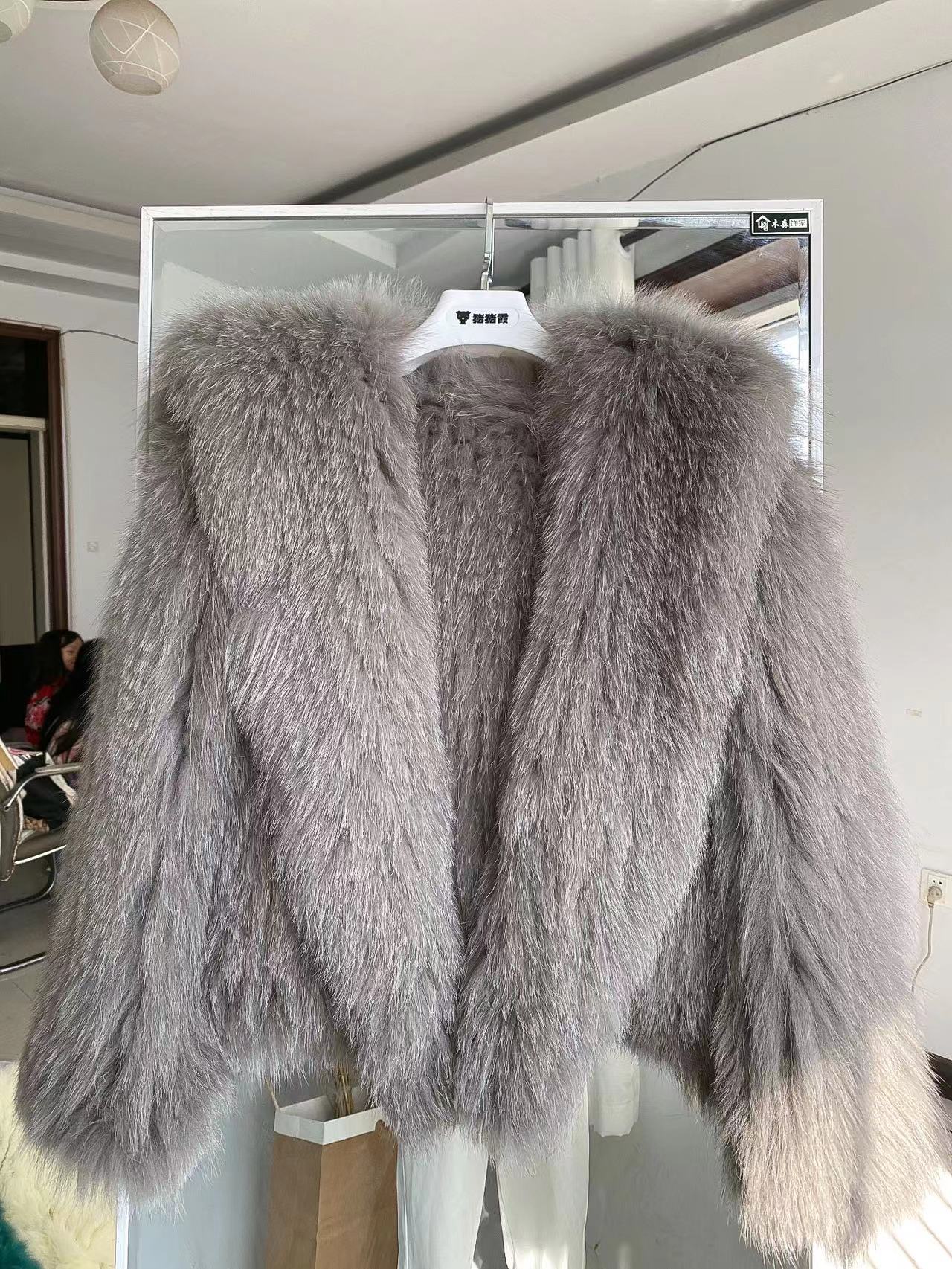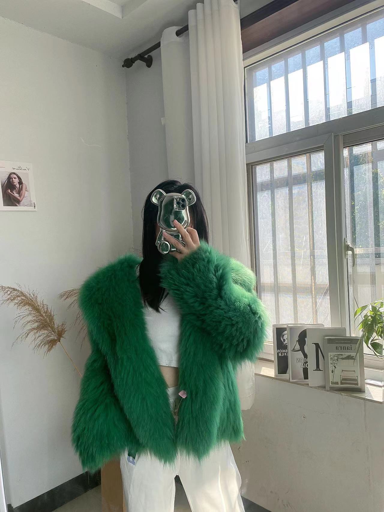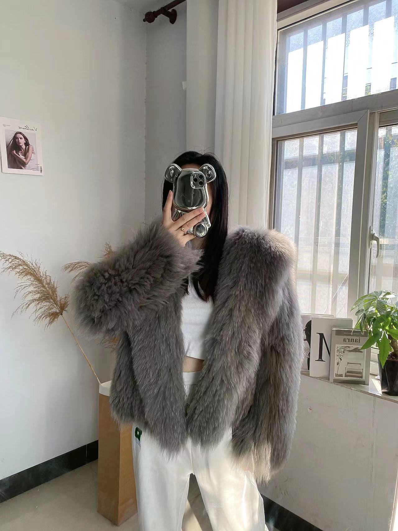 Imported long - sleeved fox Mao Navy shortcut double - sided fur coat net red - brown version of Han edition