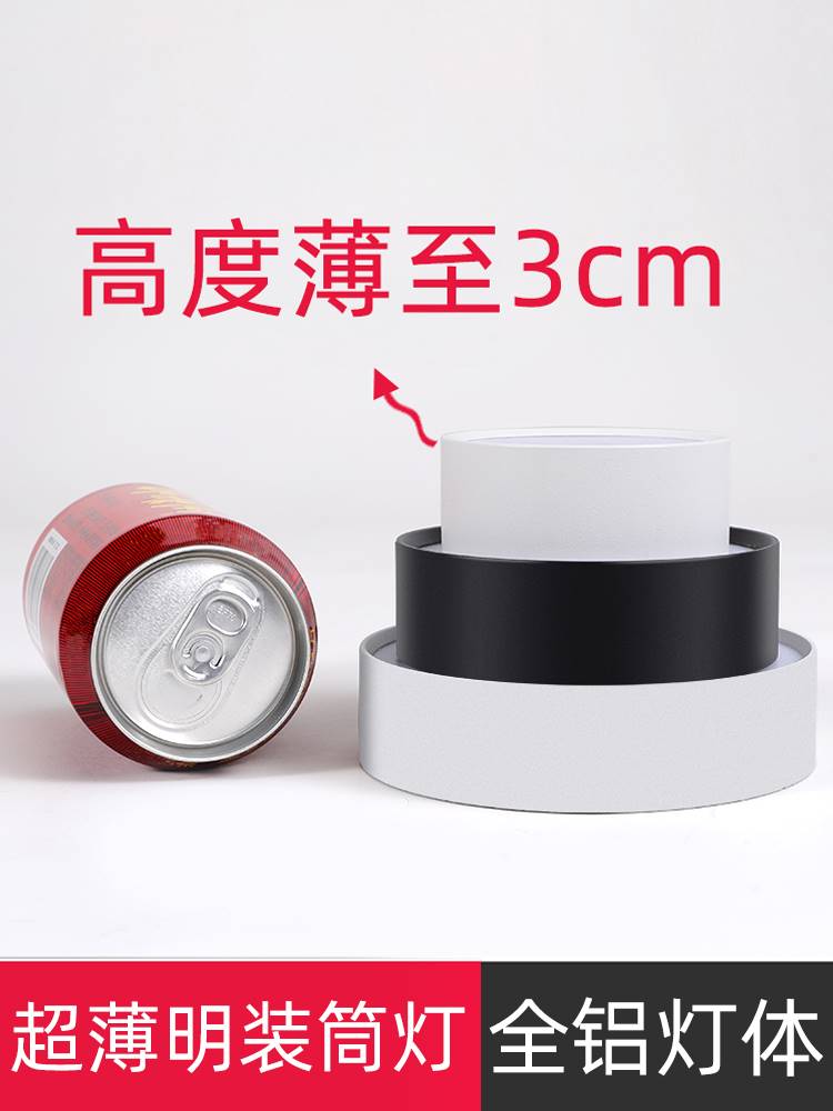 Clear fitted cylinder light led ultra-thin small suction top light round living room corridor aisle free from open pore cabinet bottom light three color light changing-Taobao