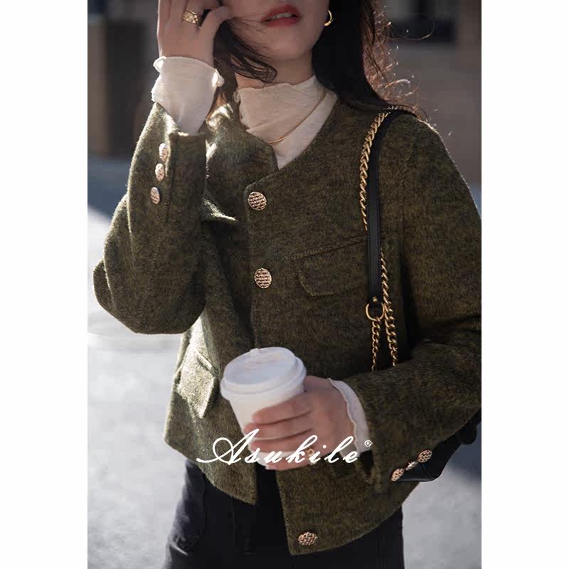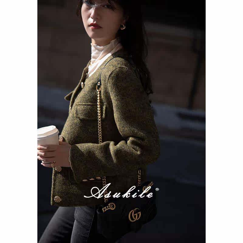 (Roman style) Xie Xiaoyan floral yarn woolen high-grade thickened small fragrant woolen coat women's winter