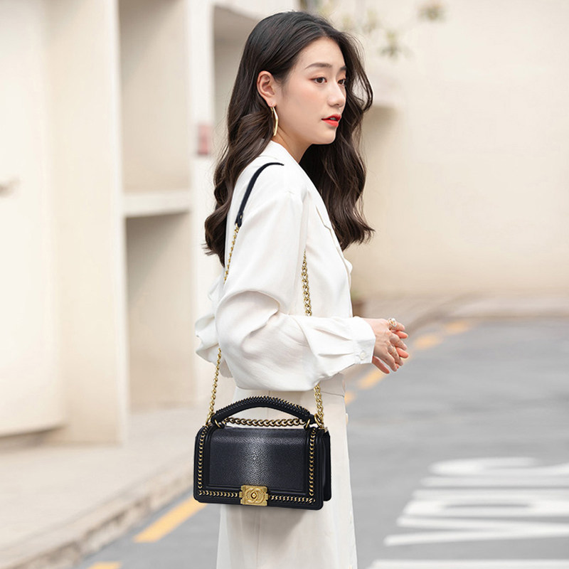 JH high-luxury pearl fish bag chain bag leather handbag new devil fish niche hot mom bag shoulder bag Messenger bag