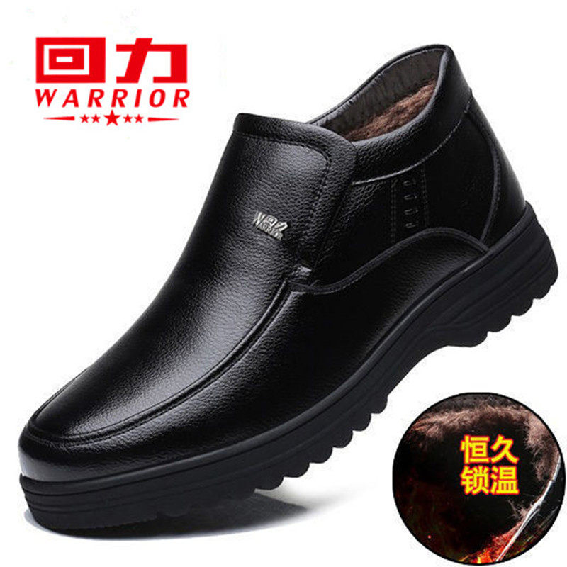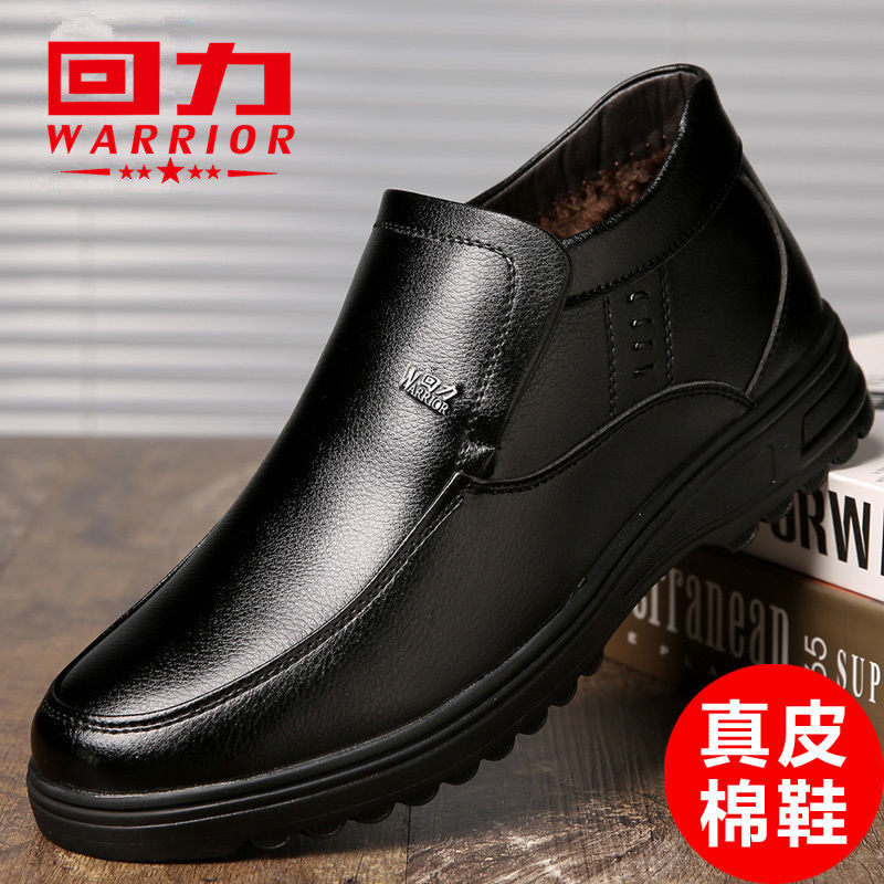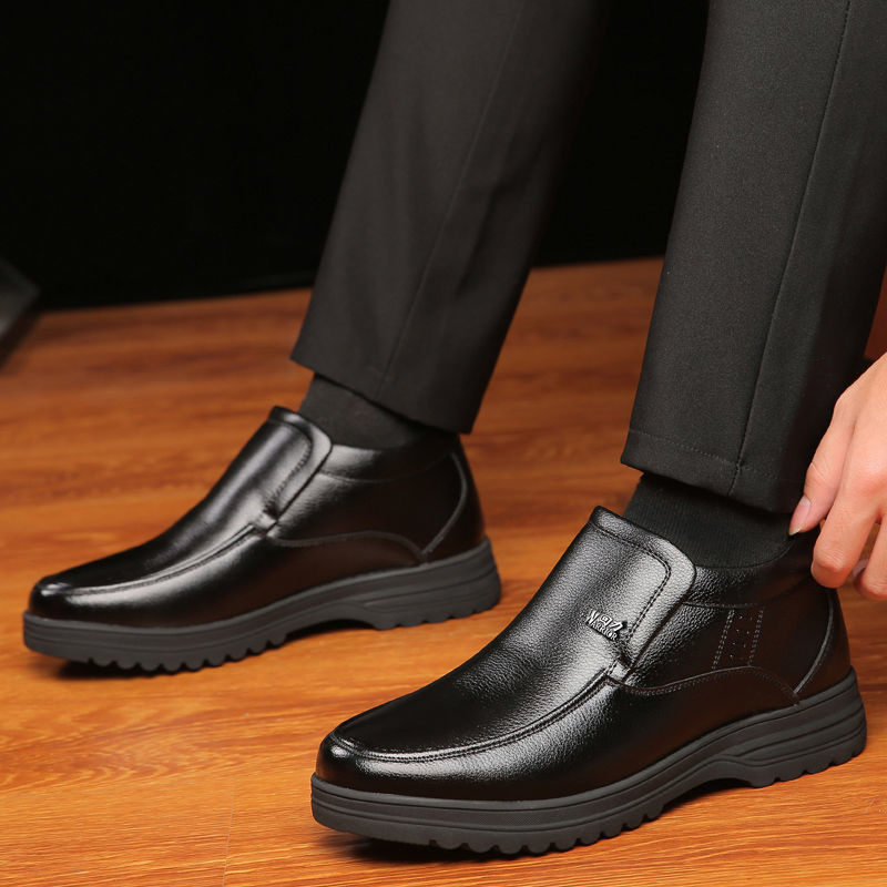 Back Force Cotton Leather Shoes Men Winter Warm Plus Suede Thickened Genuine Leather Middle Aged Cotton Shoes High Help Non-slip Dad Shoes-Taobao