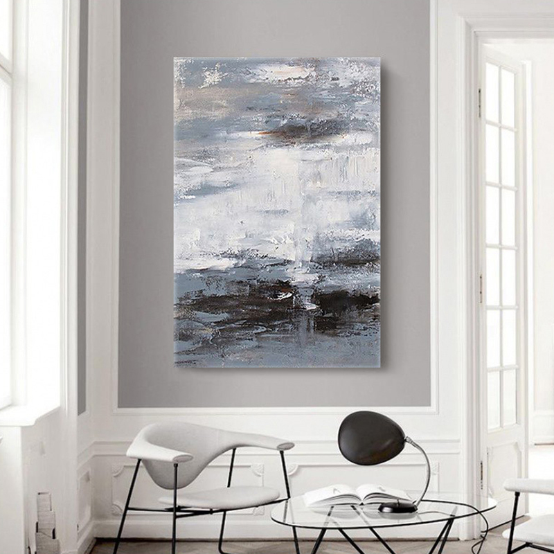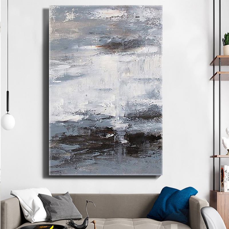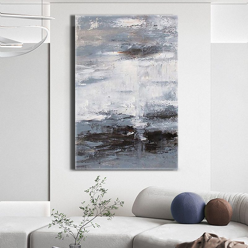 Pure hand-painted oil painting black and white gray modern abstract minimalist wabi-sabi living room porch European texture single decorative painting - Taobao