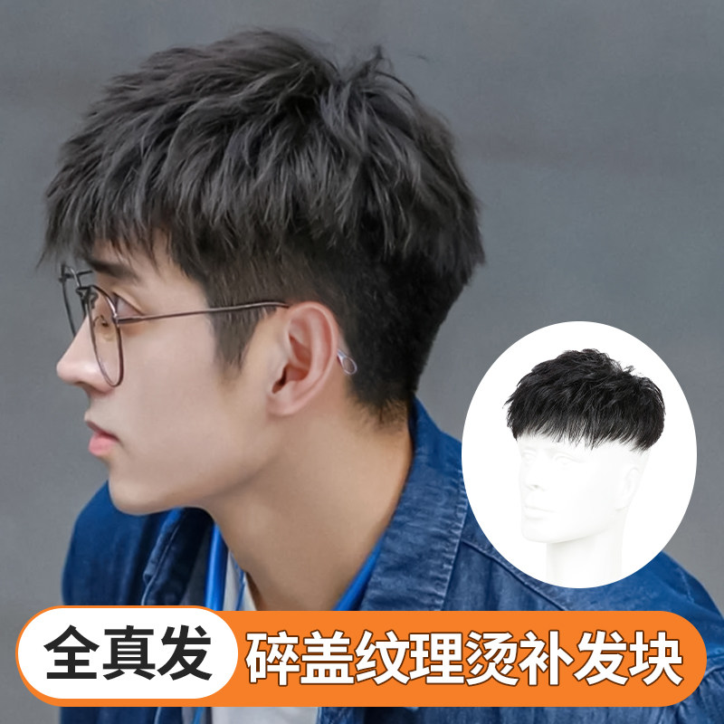 Wig Men Short Hair Full Real Hair Invisible no marks Han version handsome Crushed Lid Texture Hot and thin breathable overhead Tonic Hair sheet-Taobao
