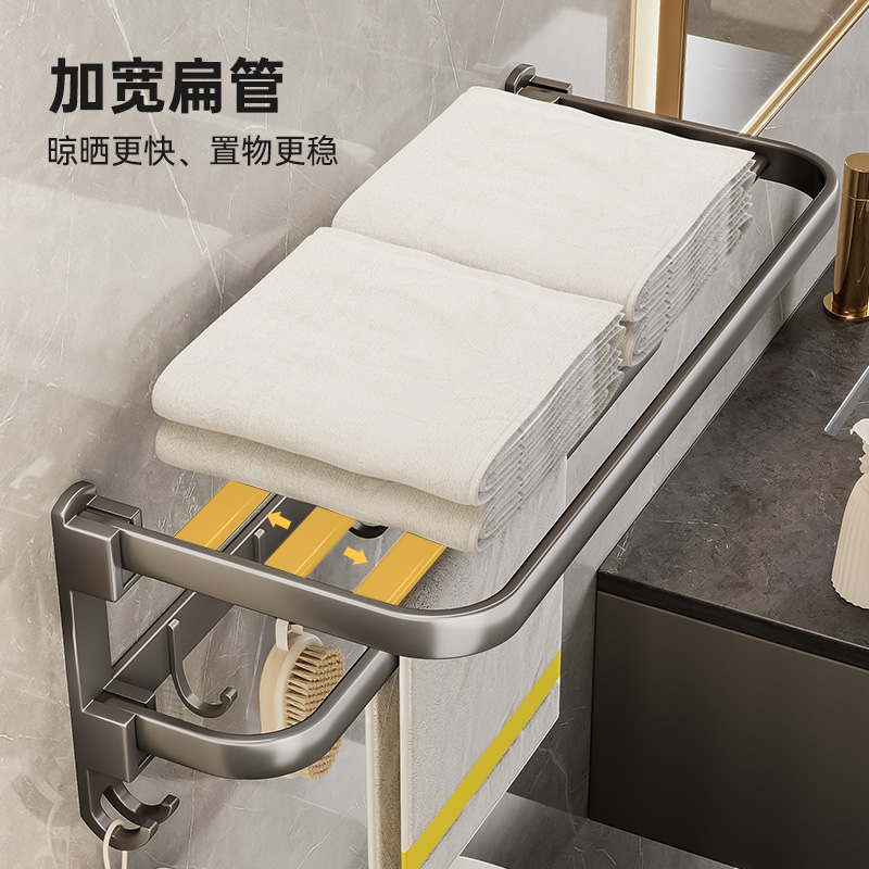 Gun Grey Towel Rack Space Aluminum Perforated Toilet Bathroom Shelf Toilet Bath Towel Rack Wall-mounted-Taobao
