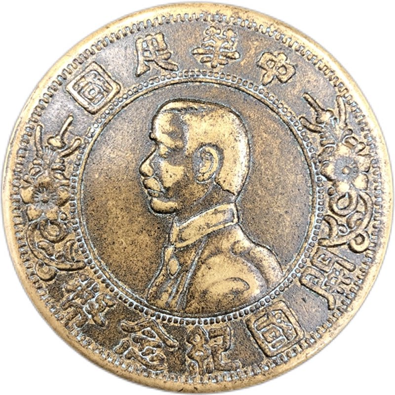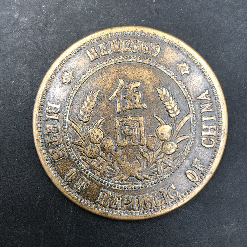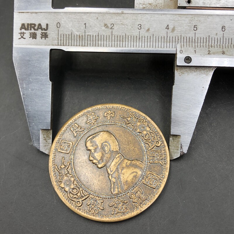 Ancient coin large - defining copper coin small head on five star 44 mm retro brass plate diameter