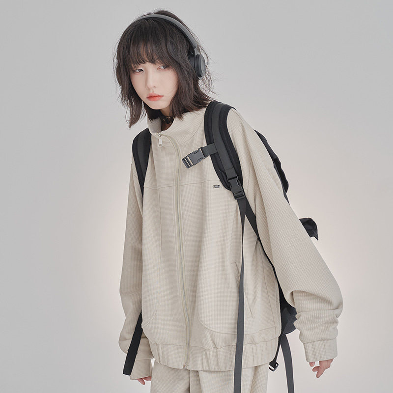 Museum of Gravity Waffle Sports Coat Women Autumn 2022 New Loose Autumn Dress Stand Collar Top K