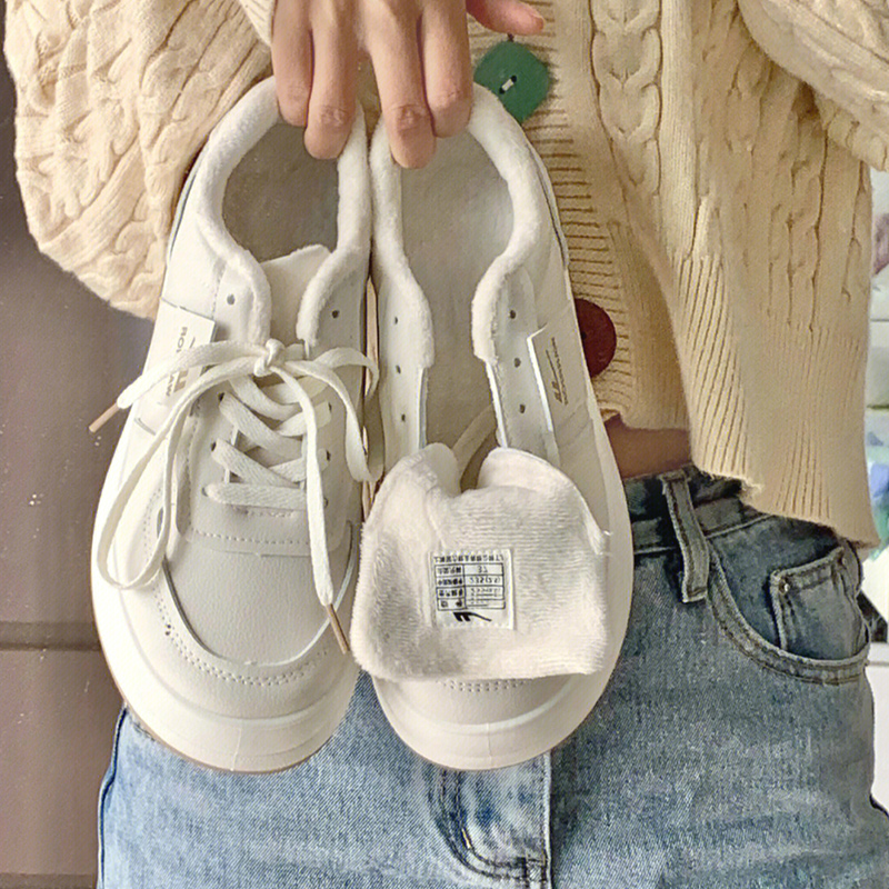 Back Force Women Shoes Two Cotton Shoes Women Winter Plus Suede Sports Board Shoes Children 2023 new autumn and winter thick bottom small white shoes-Taobao