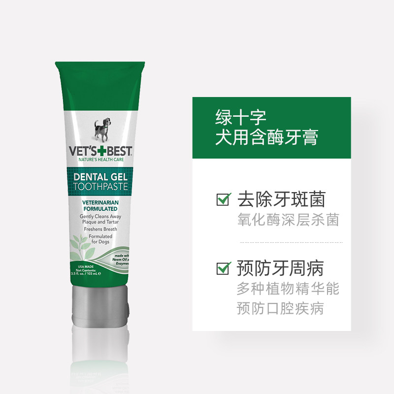 2 packs of American Vets Best Green Cross dog toothpaste to remove bad breath, clean teeth, remove calculus, and brush teeth for pets