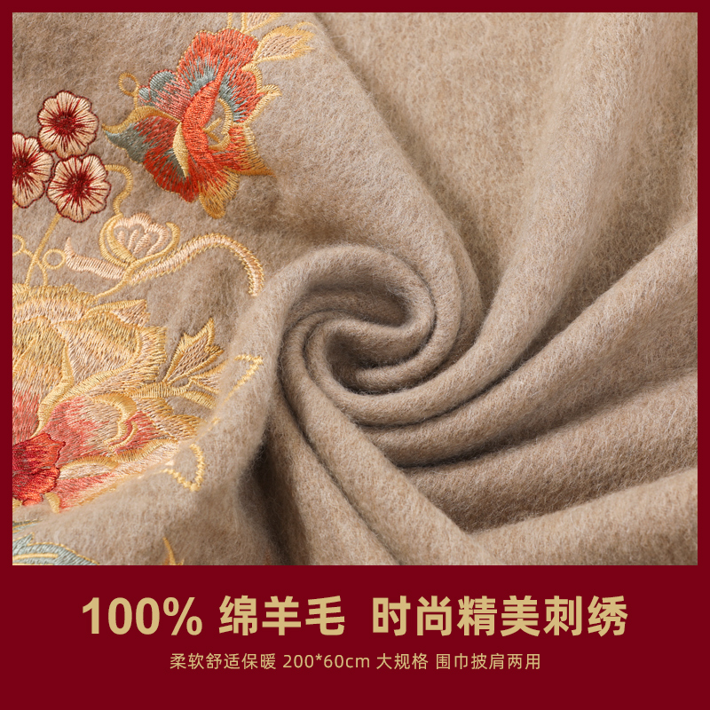 Scarf shawl outer lap female autumn winter wool qipao Mom Birthday Cashmere Warm High-end Dual-use warm surrounding neck-Taobao