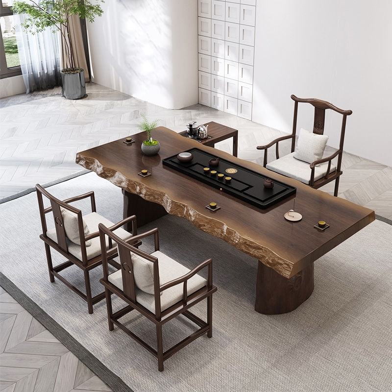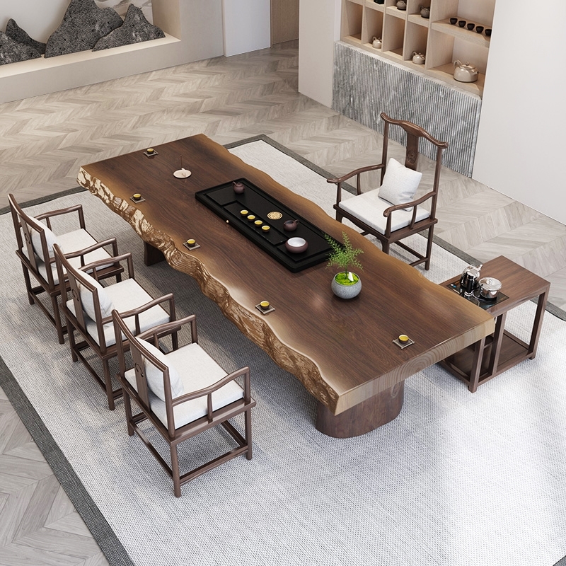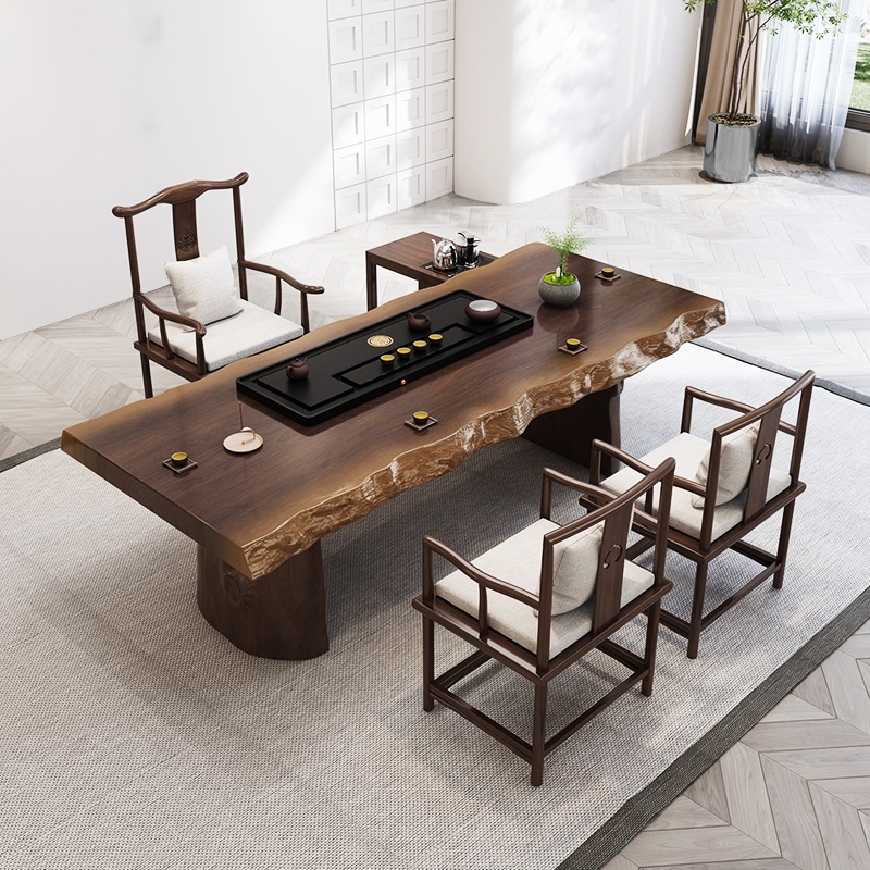 Solid wood tea table and chair combined new Chinese Zen Tea Table Office Modern minimalist log board drink tea table