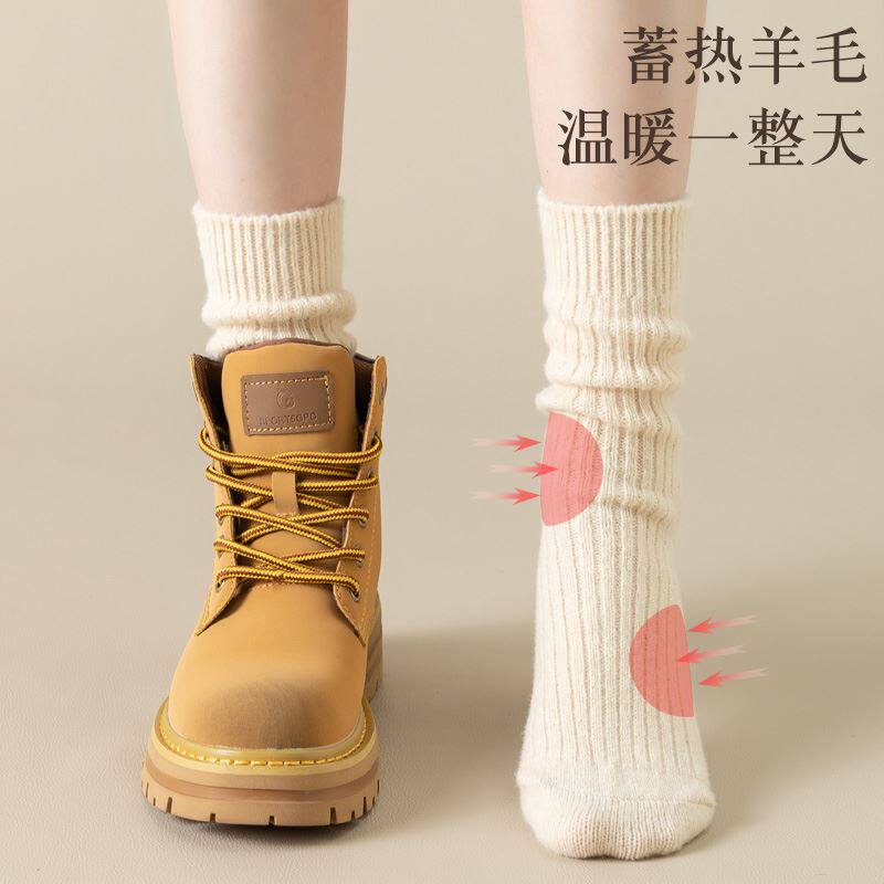 Autumn Winter Thick Garnter Thickened Wool Socks Women Cashmere Winter Warm Plush Midcylinder Long Cotton Socks Long Barrel New-Taobao