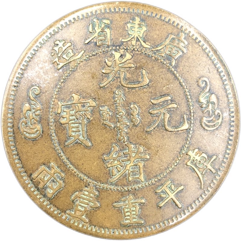 Ancient coin Daqing Coin Guangdong Province Shuanglong one or two Guangdong Yuan Bao diameter 44 mm retro brass plate