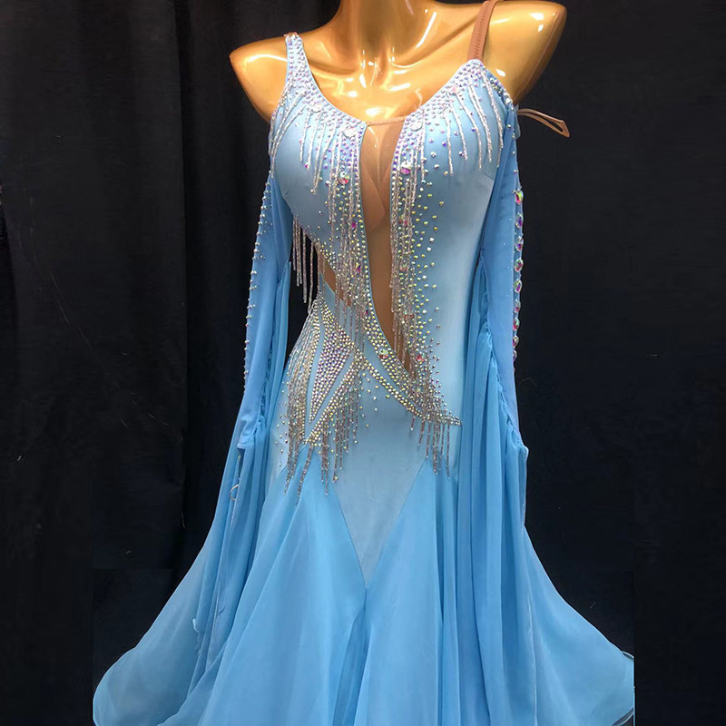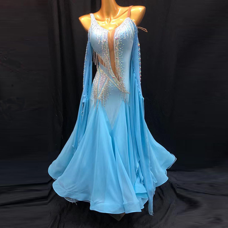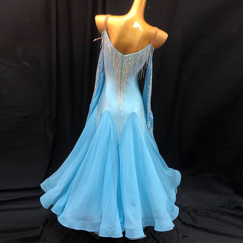 Imported snow textile Modern dance skirt bead waltz performing in national standard dance performance suit friendly dance skirt